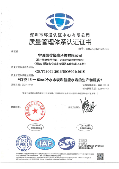 ISO9001質(zhi)量管理體(ti)系認證證(zhèng)書