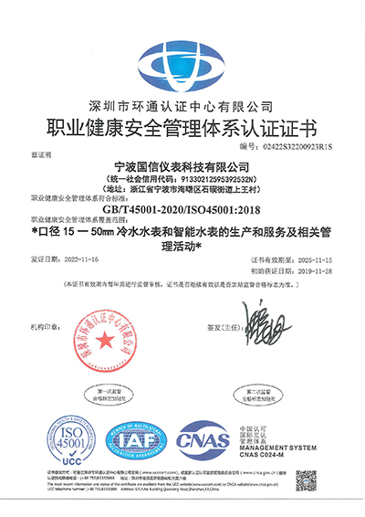 ISO45001職業健(jian)康安全管(guǎn)理體系認(rèn)證證書