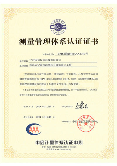 ISO10012測(cè)量管理體(ti)系認證證(zhèng)書