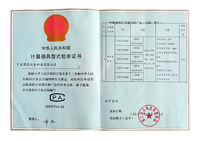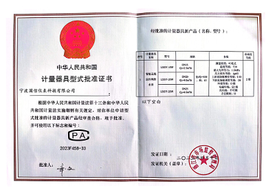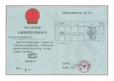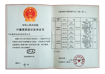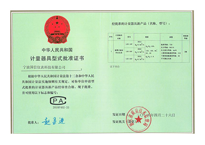 計(jì)量器具型(xing)式批準證(zhèng)書