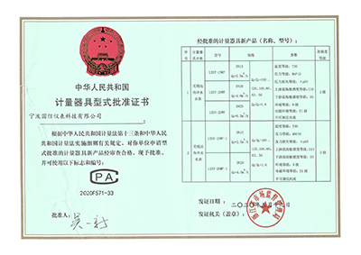 計(ji)量器具型(xíng)式批準證(zhèng)書